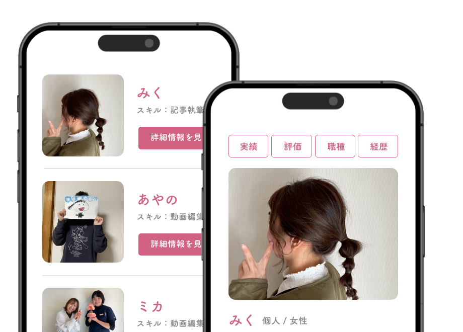 ワーカーの一覧から希望にあうワーカーを探してください。検索機能が豊富にあり、